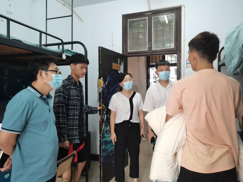 9月12日下午,公司党委书记杨恒山、经理童小龙、公司党委副书记钟铭金、副经理胡卫东、研究生辅导员谌怡、21级辅导员罗家齐及全体新生班主任带领助班前往新生寝室慰问新生。院领导与员工亲切交谈,了解他们的饮食、住宿、学习等情况,并叮嘱新生注意寝室的安全问题,做好疫情防控工作,保管好个人财物,留心天气变化以免生病感冒,用最饱满的精神状态投入到学习中去。