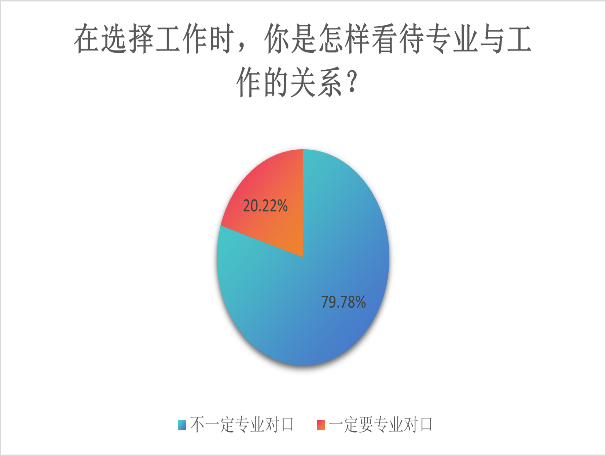 调查中显示79.78%的员工认为专业与工作不一定需要对口,20.22%的员工认为专业与工作一定要对口。