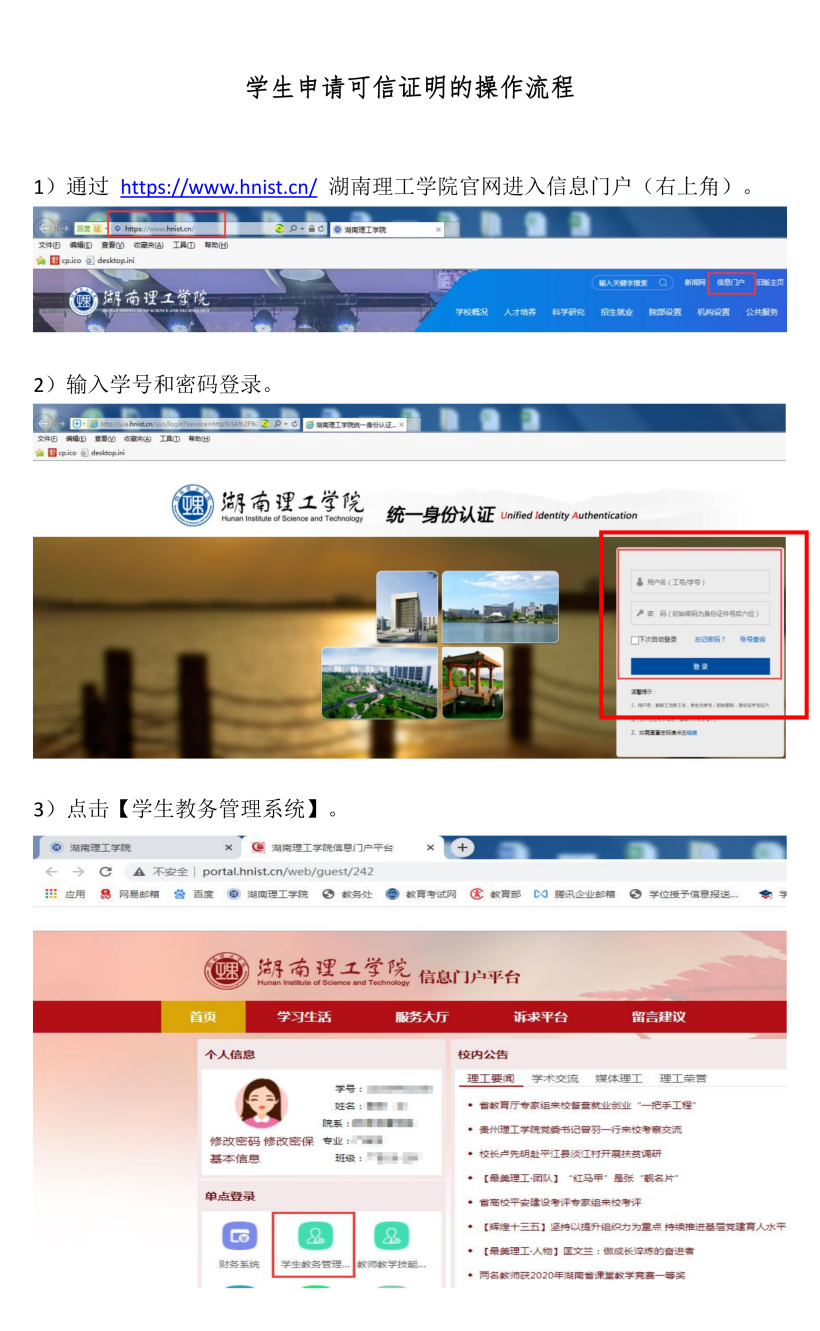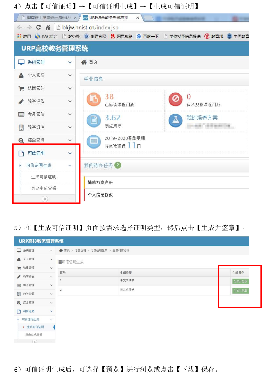 员工申请可信证明(临时成绩单)的操作流程
