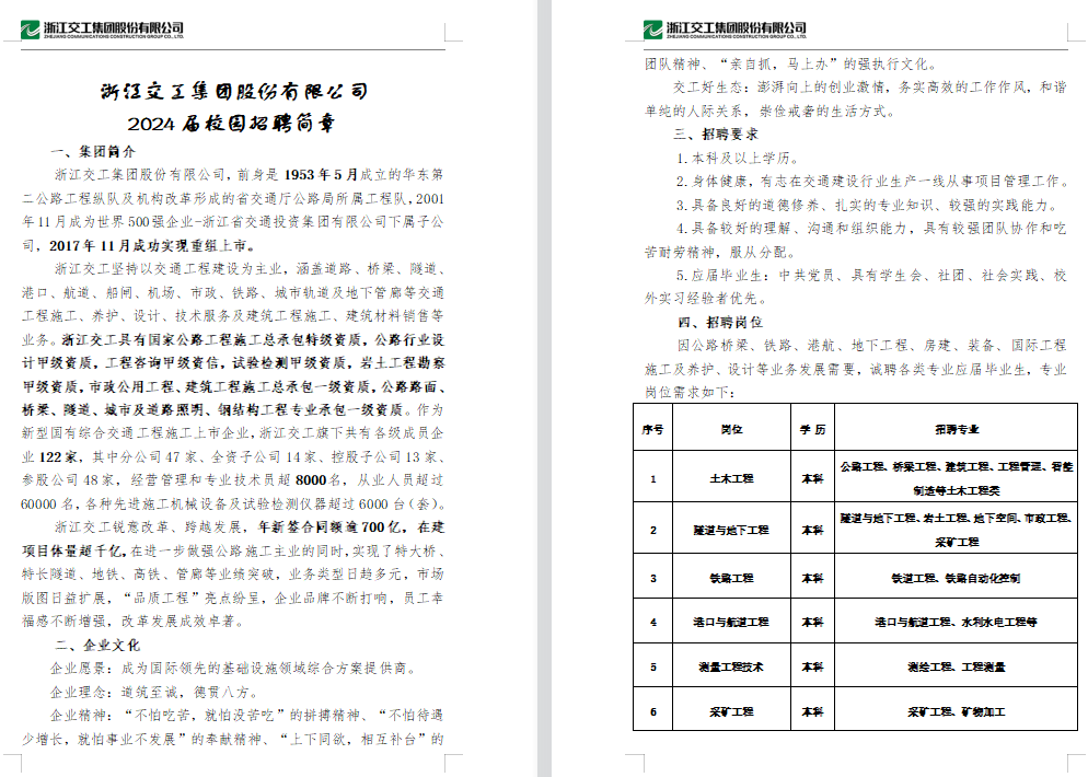 浙江交工集团股份有限公司2023bevictor伟德体育秋季专场招聘会安排