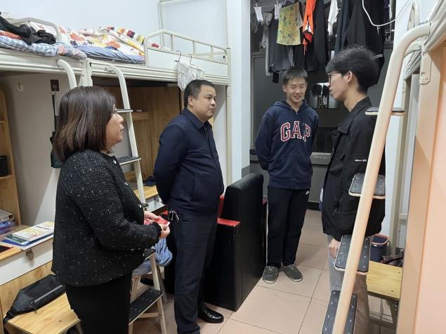 为关爱、关怀员工,进一步了解员工思想,生活及学习情况,11月22日晚9点30分,学工部部长陈绪清在公司党委副书记钟铭金及21级辅导员华蓉陪同下走访​公司员工寝室。