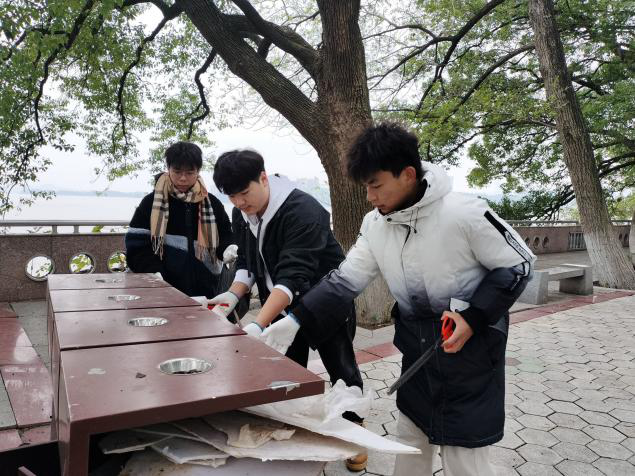 活动伊始,付圣对此次义务劳动的开展分配劳动工具并进行工作安排,随后,由各负责人带队按分区负责打扫,团培成员手持清洁工具,对南湖岸边的烟头、纸屑、塑料袋等垃圾及建筑物上的污渍进行仔细清扫与清洁,并集中处理卫生死角。在此过程中,团培成员弘扬吃苦耐劳的优良传统,以实际行动引导在校老员工投身于爱护环境的实践之中,为维护南湖水清、岸绿的环境贡献自己的一份力量。