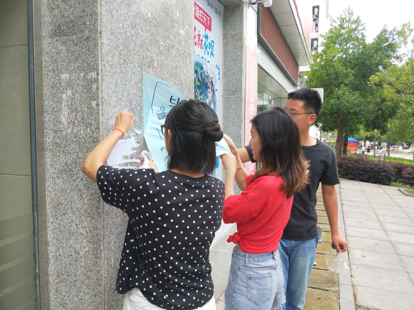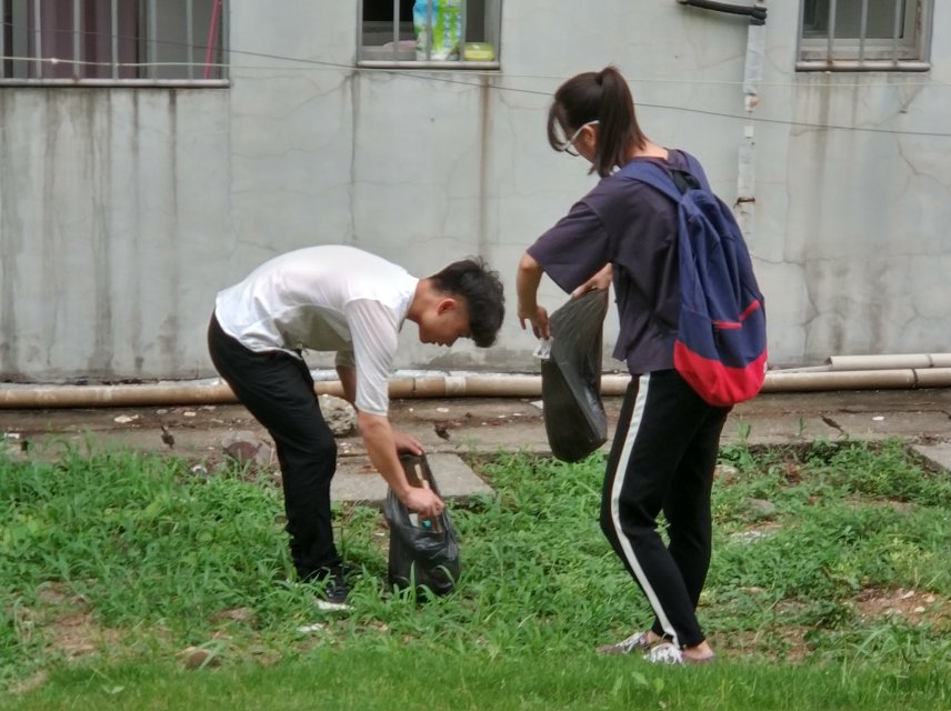 同学们用水软化宿舍楼内及其外围的小广告并使用钢丝球进行清理,对周边绿化带中残留的杂物与垃圾进行排查式扫除。