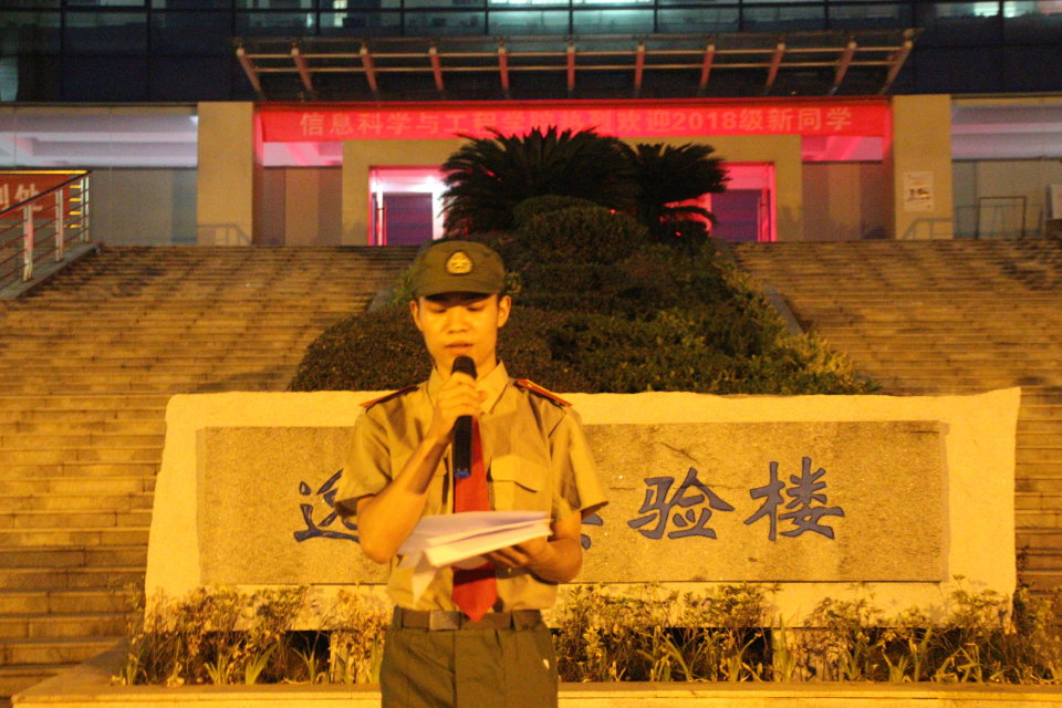 新生代表周超发言,他表示,在崭新的环境中,每位新生要确立目标,勇往直前,成为一位“独立”的人,并“爱我所爱,行我所行”,在学业为重的基础上,培养兴趣爱好,拓展自身视野。