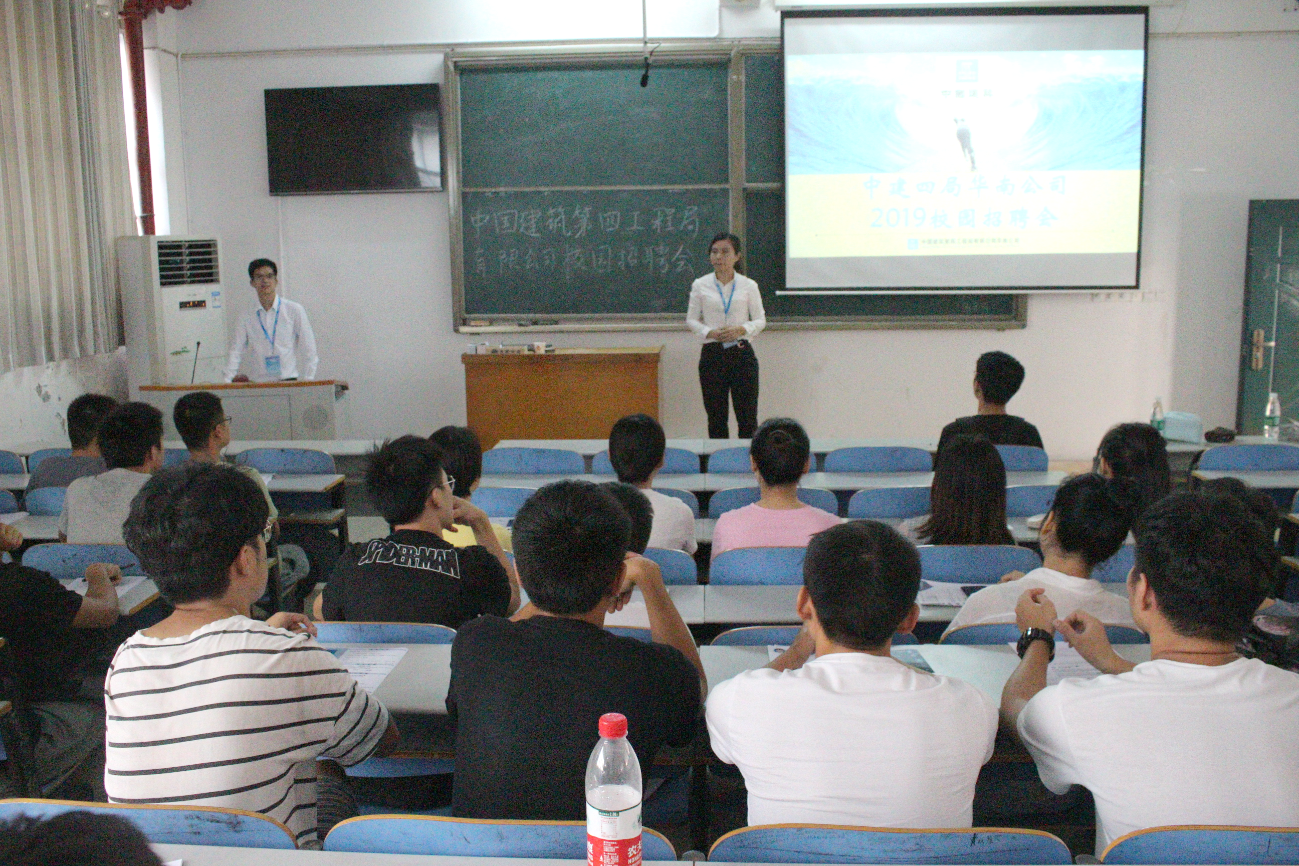 9月14日下午,中国建筑第四工程局有限公司华南分公司校园专场招聘会于15204教室举行,近40名应届毕业生参加此次招聘会。