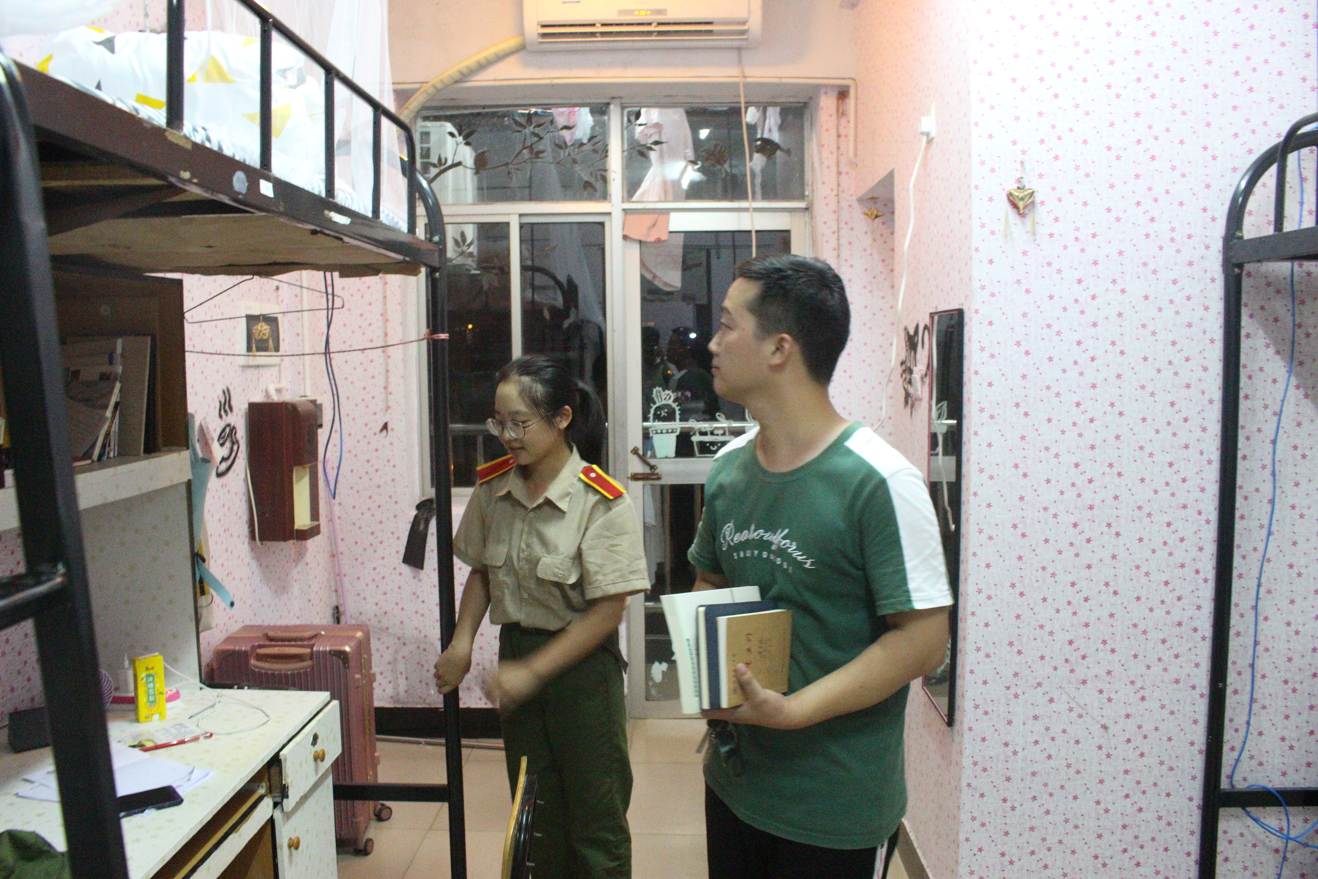 走访过程中,周凯红仔细查看每个寝室,对宿舍用电、内务状态提出建议,并与新生亲切交流,指导新生合理规划宿舍,强调杜绝使用违规电器,谨防电器火灾,并要求新生保持寝室卫生干净整洁,物件摆放齐整,营造良好的寝室学习生活氛围。