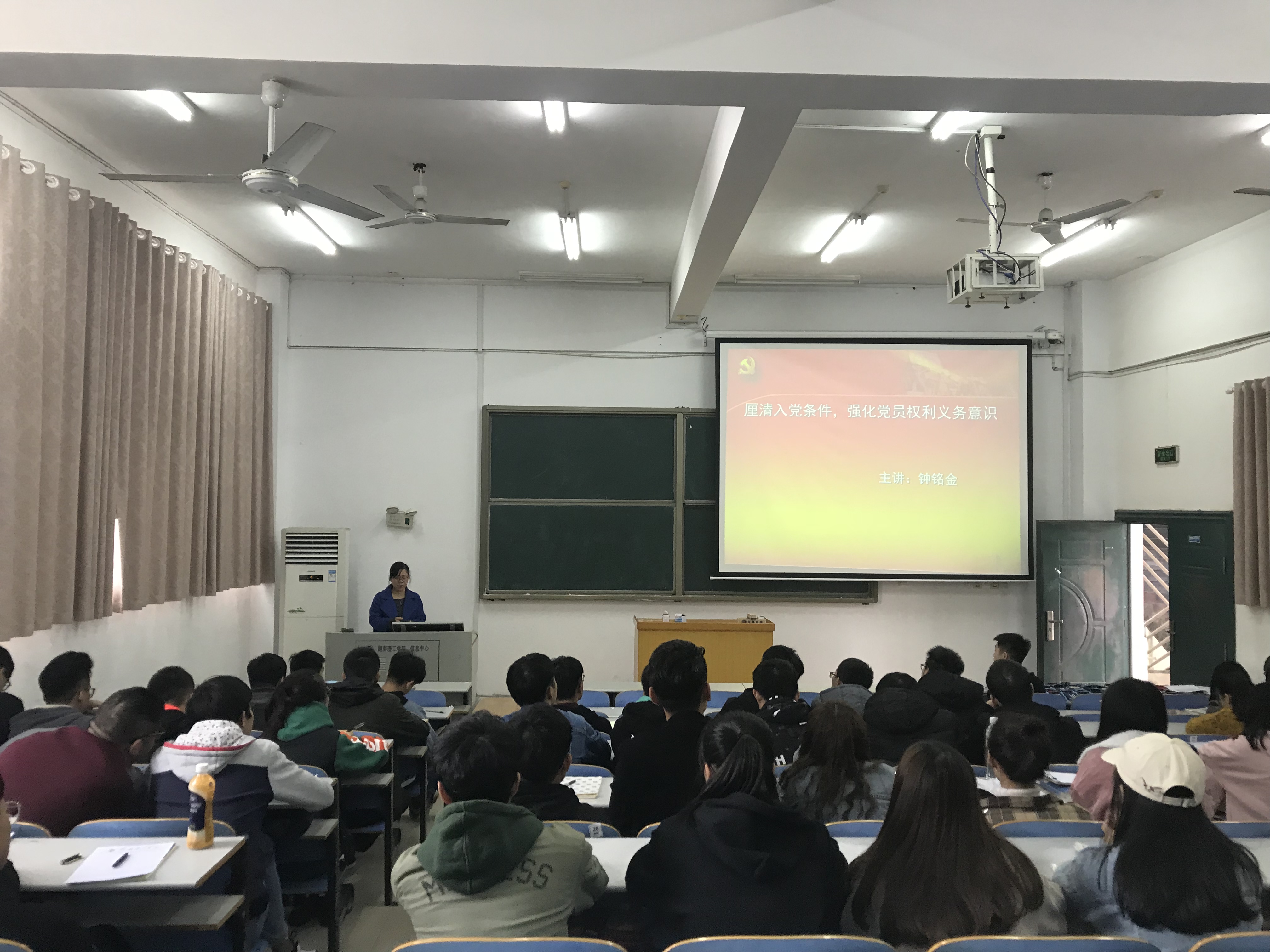 钟铭金以“厘清入党条件,强化党员权利义务意识”为主题,从“申请入党条件”、“党员的义务和权利”与“发展党员的考察程序”共三方面展开阐述,并强调了党员的八项义务、八项权利。她指出,有意入党的员工应纯洁入党动机,从“刻苦学习”、“为他人服务”以及“履行员工的责任和义务”三方面加强自身的党性修养。钟铭金为有意入党的员工明晰入党程序,并希望,有意入党的员工严格履行入党规则及程序,早日成为党员。