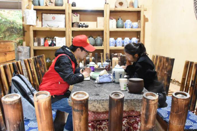 随后,超越工作室党支部成员进行现场实地调研。党支部成员积极观察周边自然环境,各成员携带专业仪器在需要规划的路段进行高差、距离测量等工作,为绘制地形图与后期图纸深化提供数据支持。在采访当地居民、开展问卷调查的过程中,成员们不仅深入了解到当地居民对淡江村沿路景观设计和安置点规划的想法与愿景,也领略了老唐茶厂独特的烟茶手艺等淡江村独特的传统手艺文化。
