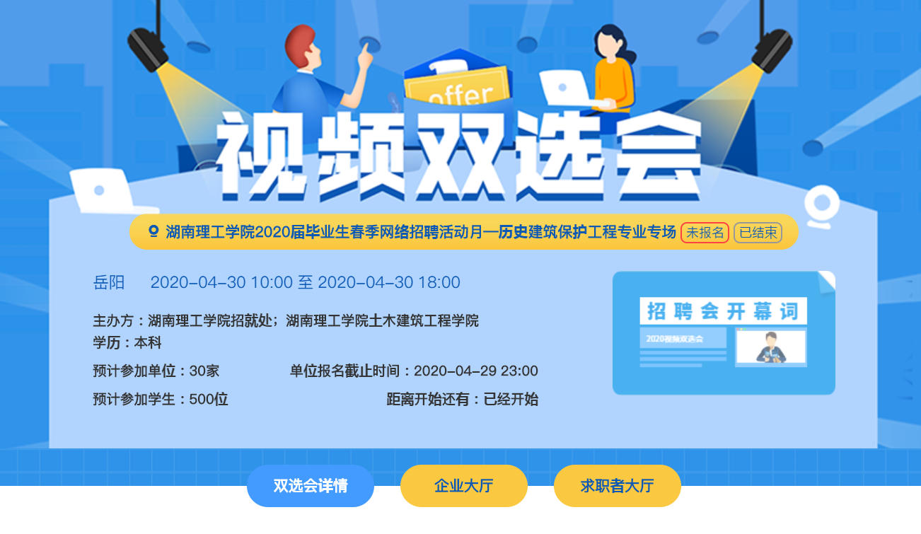 “2020届毕业生春季网络招聘活动月—历史建筑保护工程专场网络视频双选会”由公司招就处和bevictor伟德体育联合主办,为历史建筑保护工程专业的员工搭建,6家历保领域知名企事业单位参加。