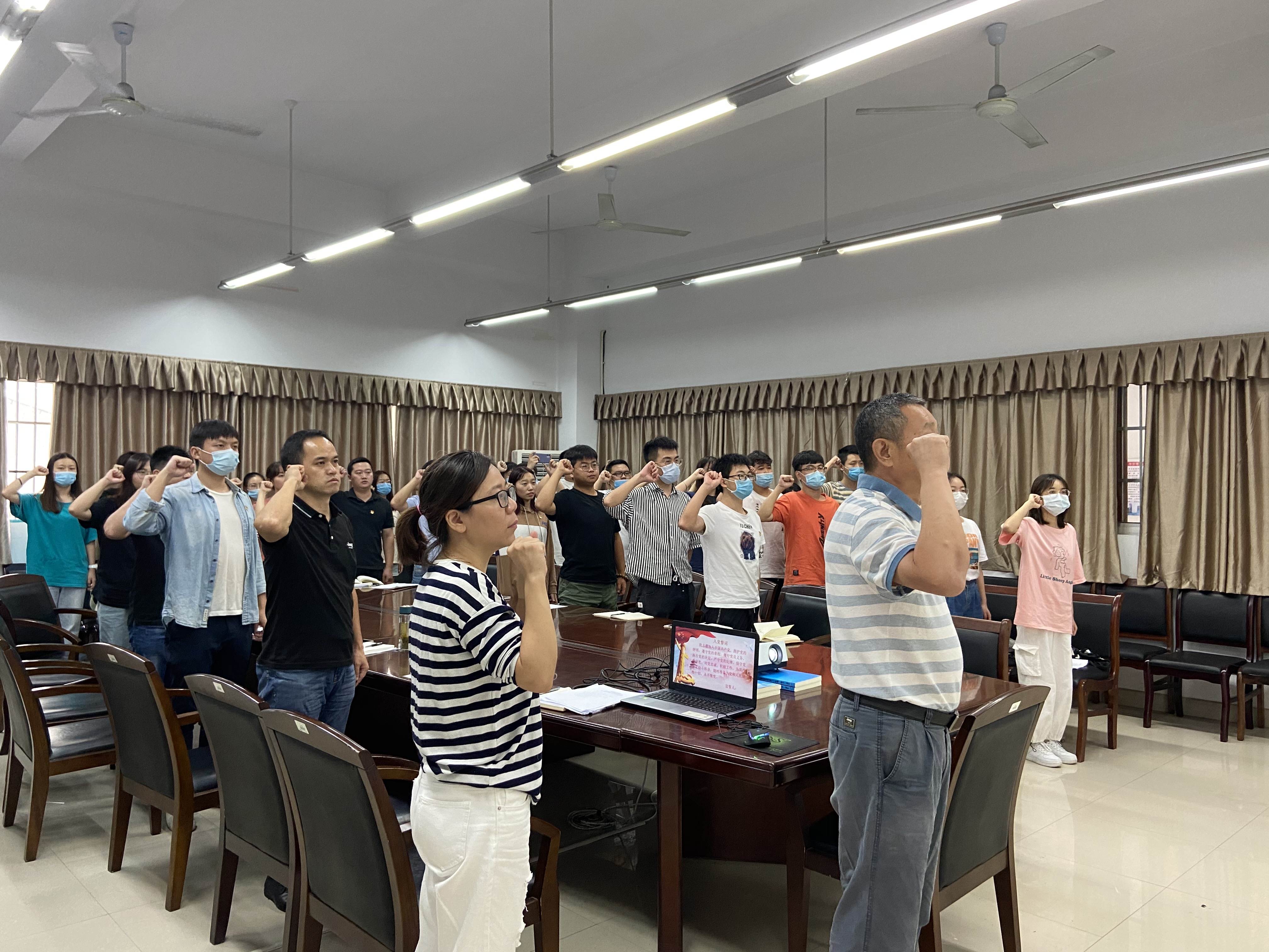 在公司党委书记文锦的带领下,全体党员重温入党誓词。