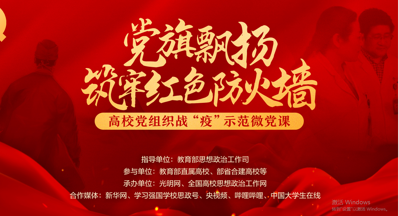 “党旗飘扬筑牢红色防火墙——七一特别节目”由教育部思想政治工作司指导,教育部直属高校、部省合建高校参与,线上微党课通过讲授抗议故事,传播抗议精神,激发责任担当。