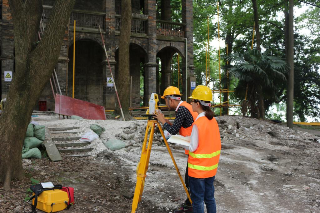 超越工作室的同学们正在湖滨大学旧址开展古建筑修复工作