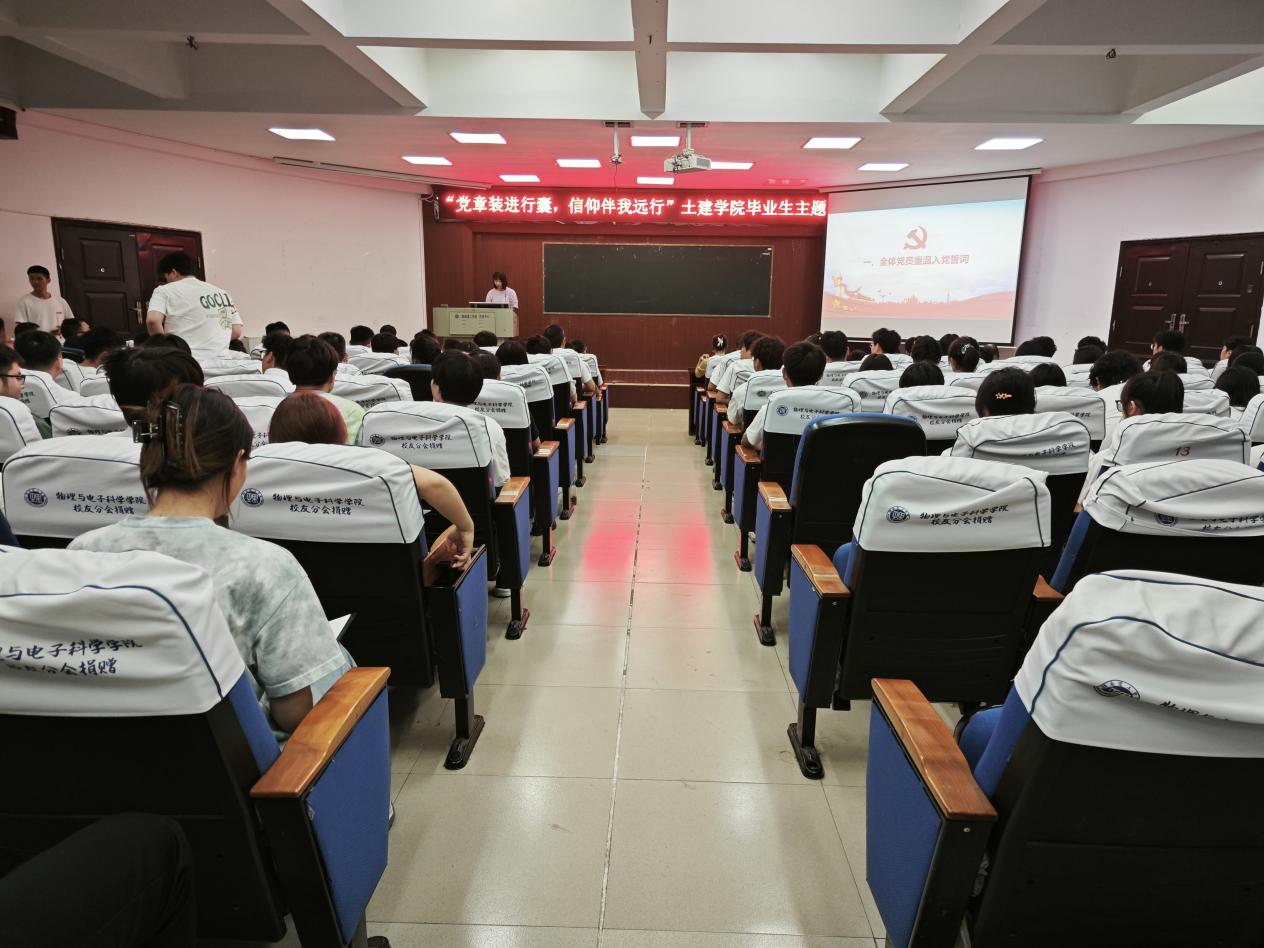 为进一步加强毕业生党员的思想政治教育,坚定理想信念,传承红色基因,5月27下午4点,公司在6号楼学术报告厅成功举办了2025届毕业生“党章进行囊,信仰伴远行”主题教育活动。公司党委成员、全体教师党员、全体员工党员、入党积极分子、员工干部代表、第22期发展对象培训班成员、第52期入党积极分子培训班成员以及24级水利班代表齐聚一堂,共同参与了此次意义非凡的活动。活动由25届毕业生辅导员华蓉主持。